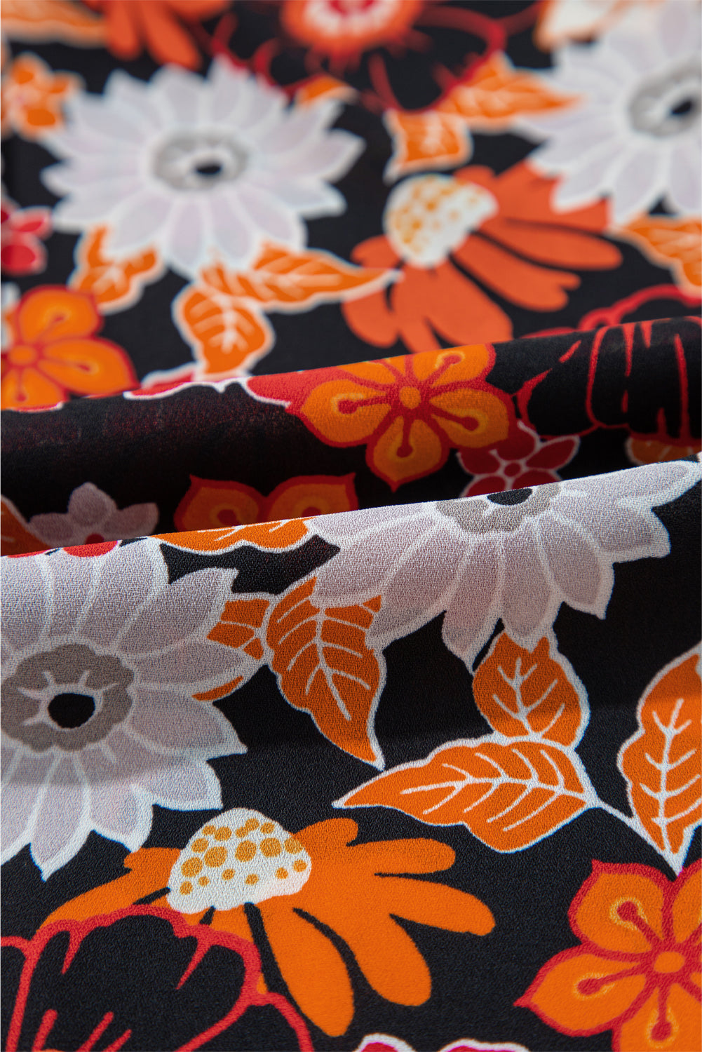 Multicolour Smocked High Waist Long Sleeve Floral Dress