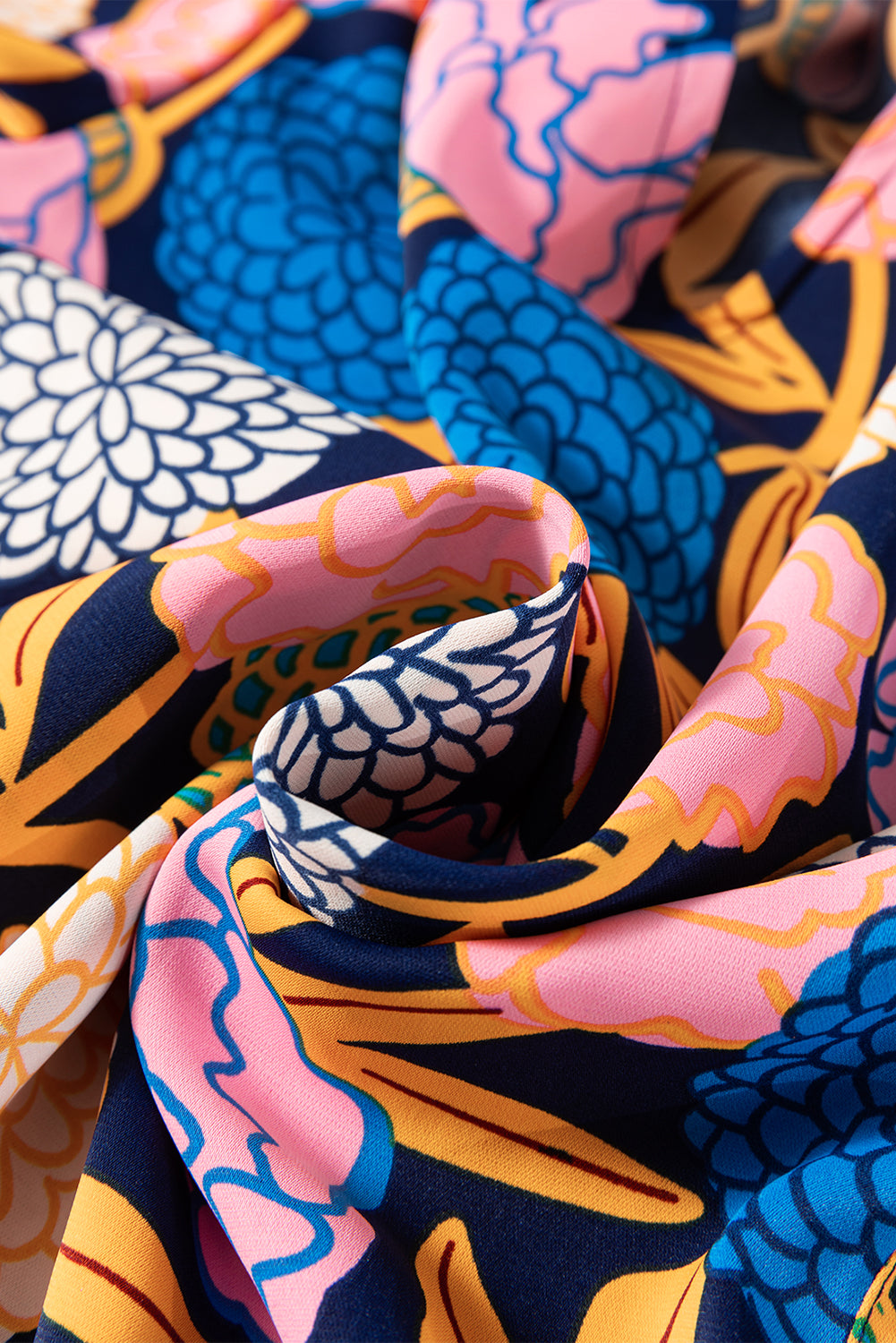 Navy Blue Hydrangea Floral Print Bishop Sleeve V Neck Shift Dress