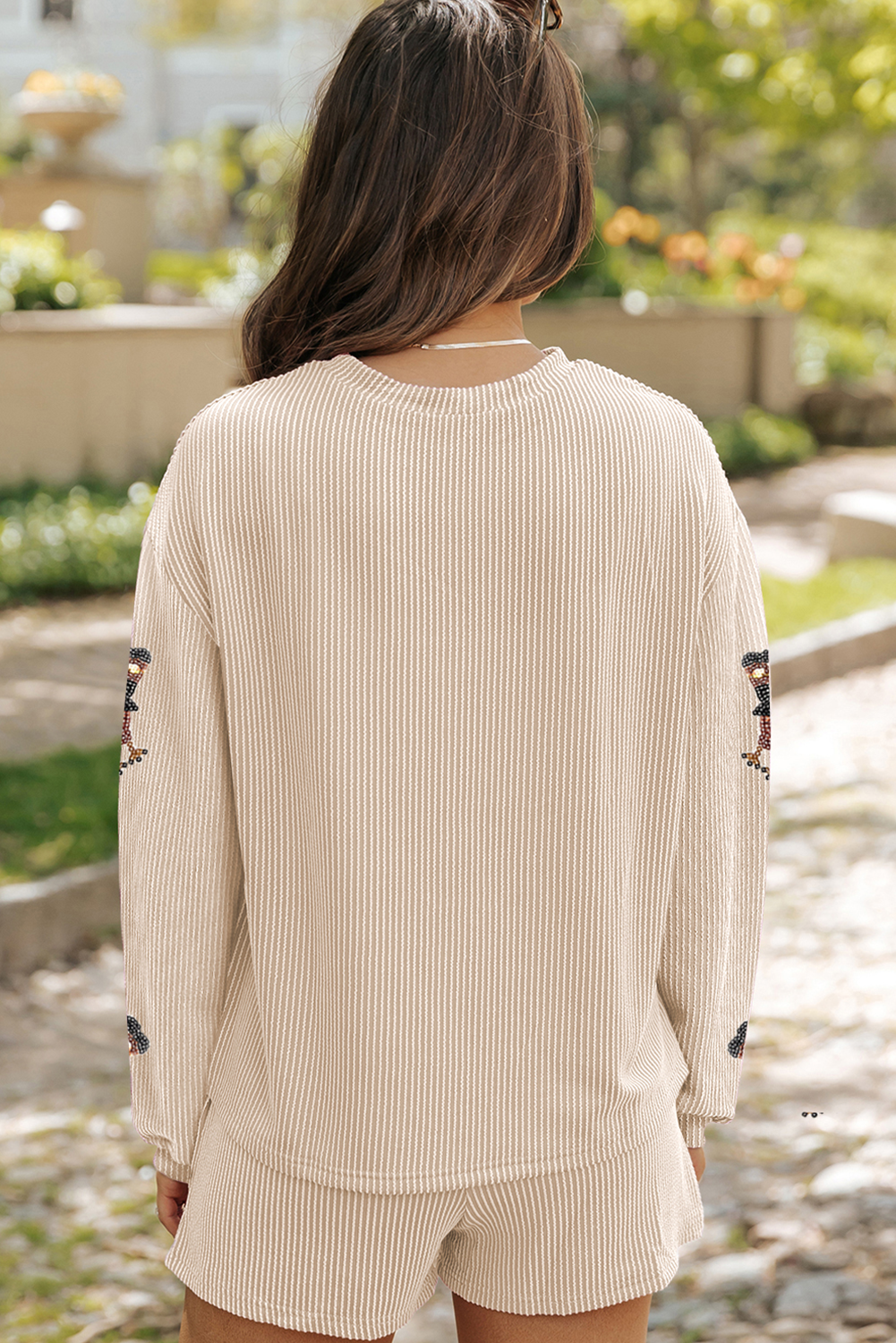 Parchment Thanksgiving Sequined Turkey Corded Knit Loose Fit Shorts Set