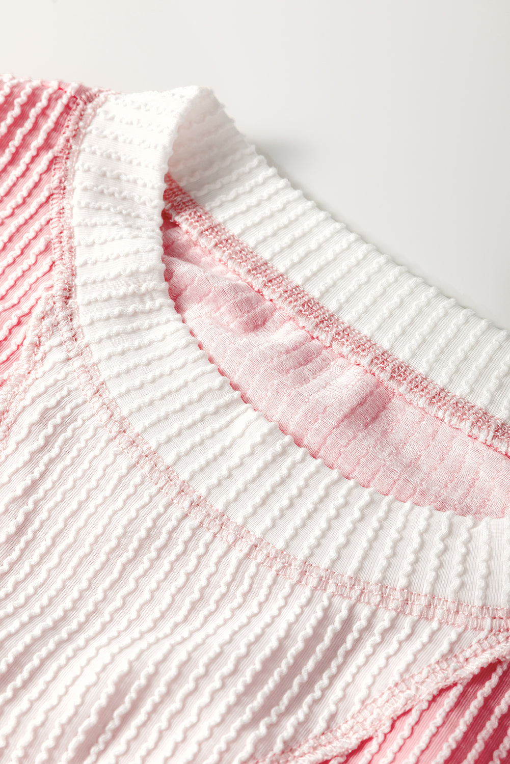Peach Blossom Corded Colorblock Drop Shoulder Loose Top