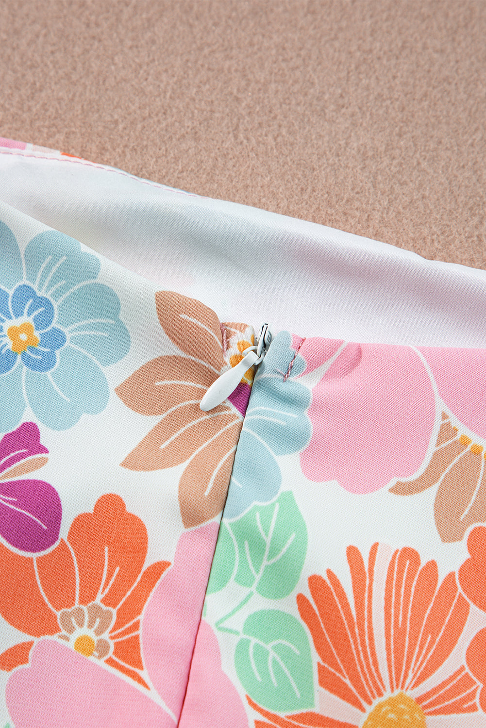 Pink Floral Puff Sleeve Square Neck Babydoll Blouse