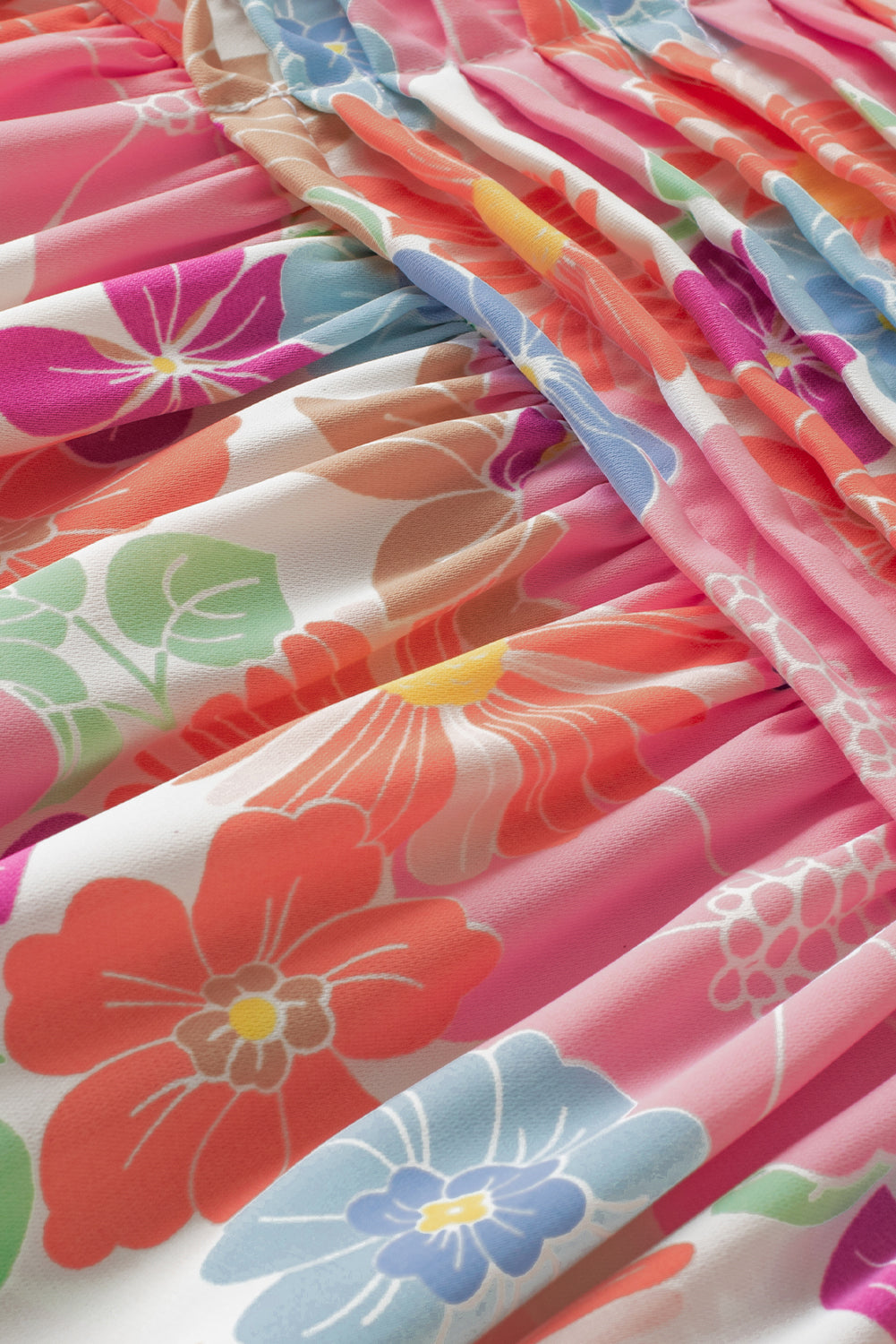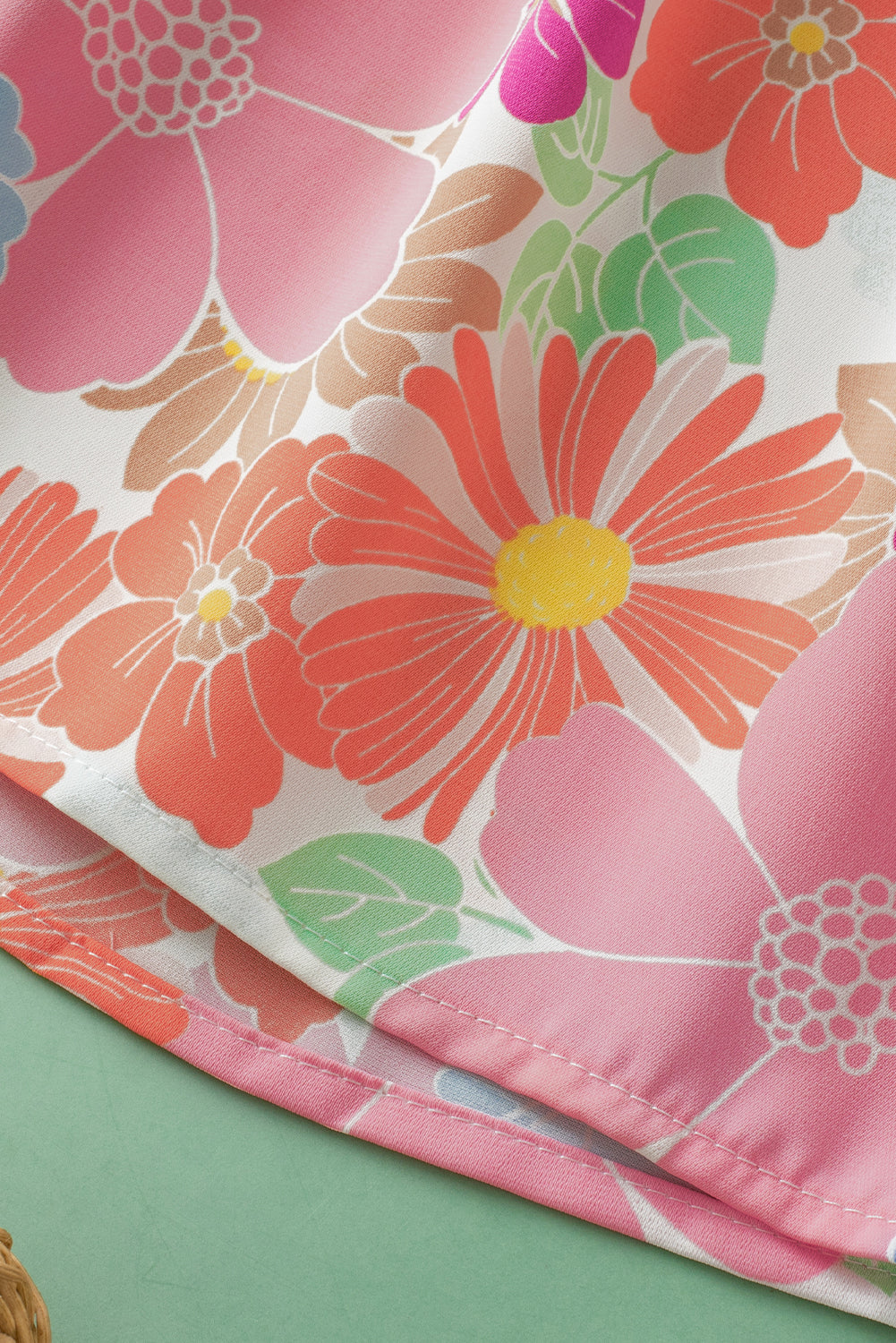 Pink Floral Ruffled Flutter Sleeve Pleated Blouse