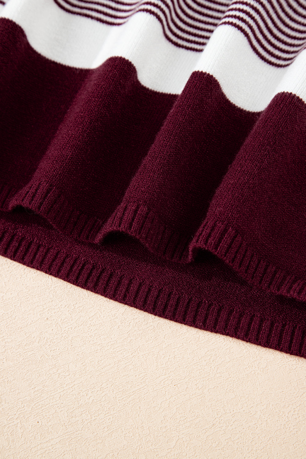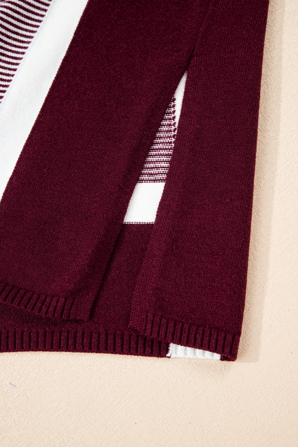 Red Stripe Color Block Patchwork Dolman Oversize Tunic Sweater