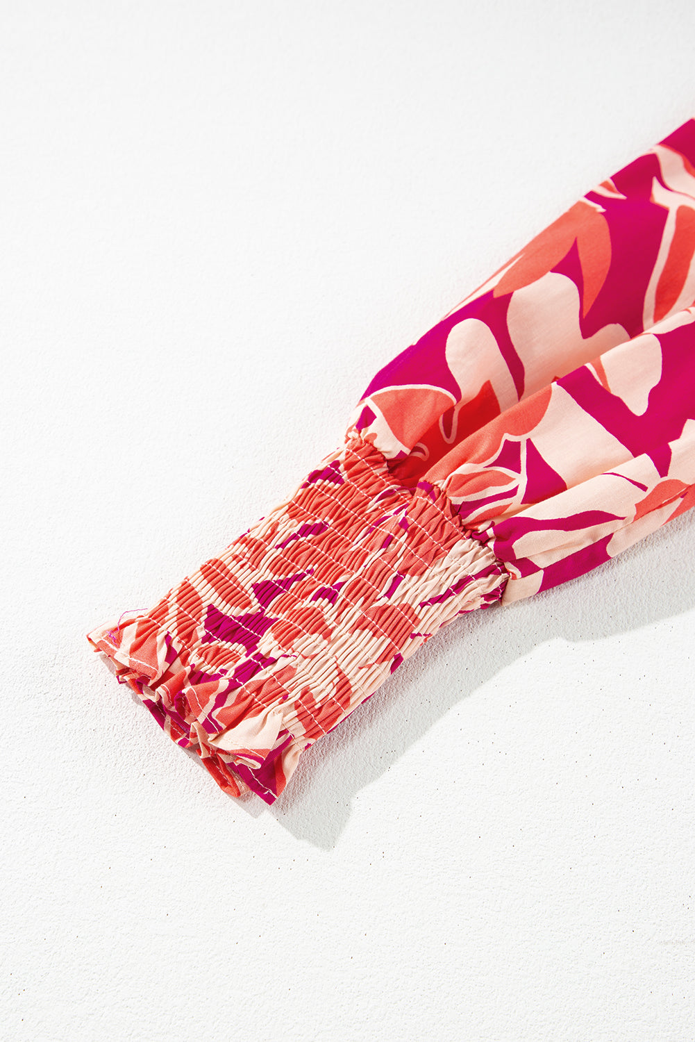 Rose Floral Print Buttoned Smocked High Waist Maxi Dress