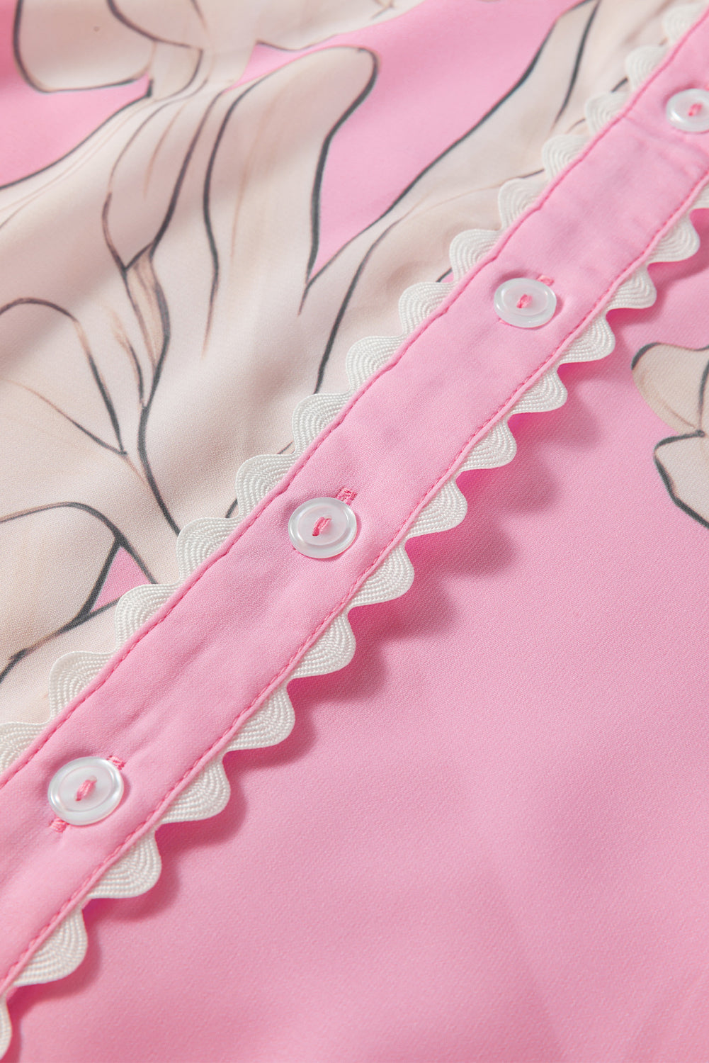 Rose Floral Ric Rac Edge Puff Sleeve Button Up Summer Shirt