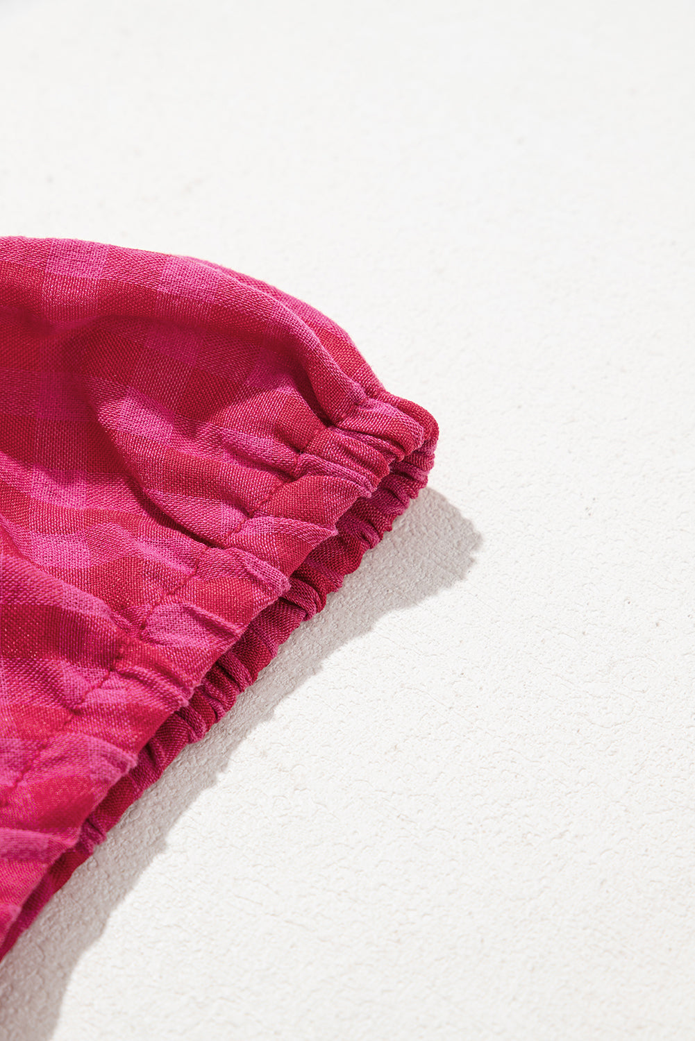 Rose Ginham Check Bubble Sleeve Ruffled Maxi Dress