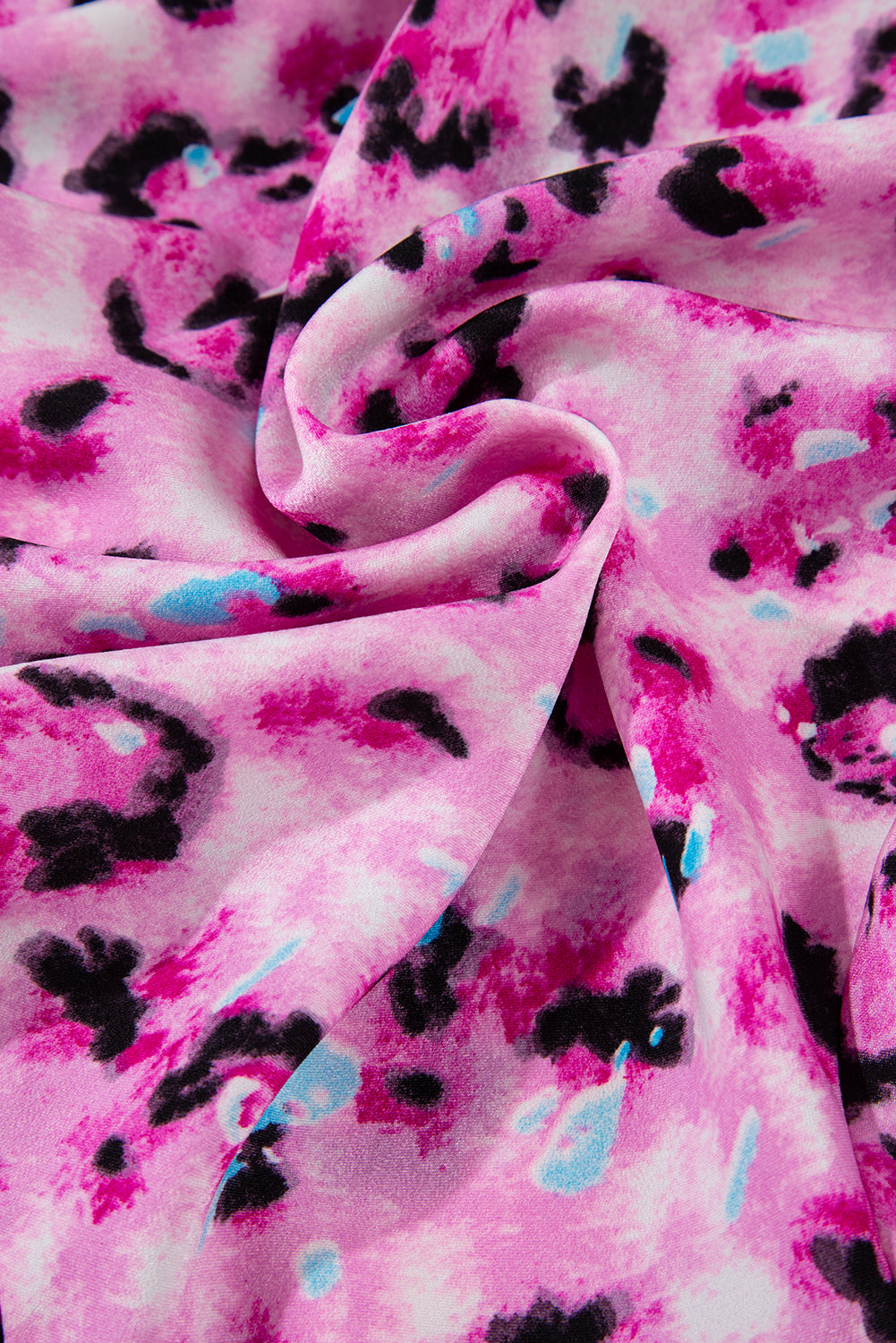 Rose Leopard Print Buttoned Front 3/4 Sleeve Tiered Ruffled Hem Dress
