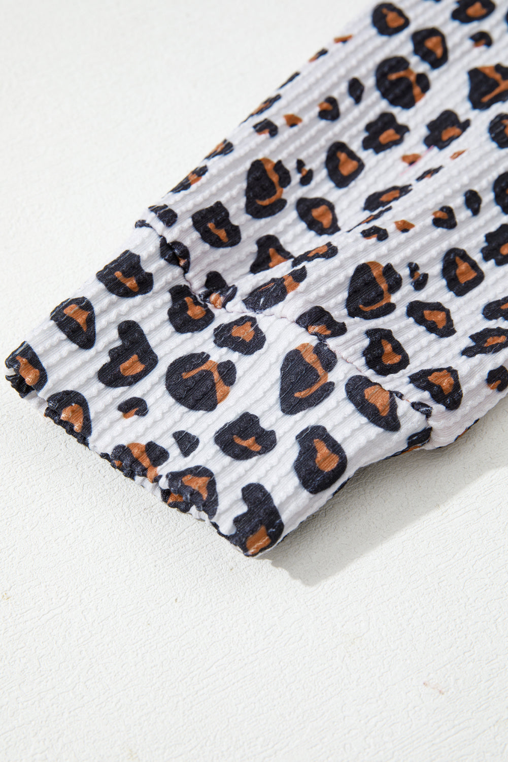 Rose Red Leopard Patched Twisted Ribbed Western Casual Shacket