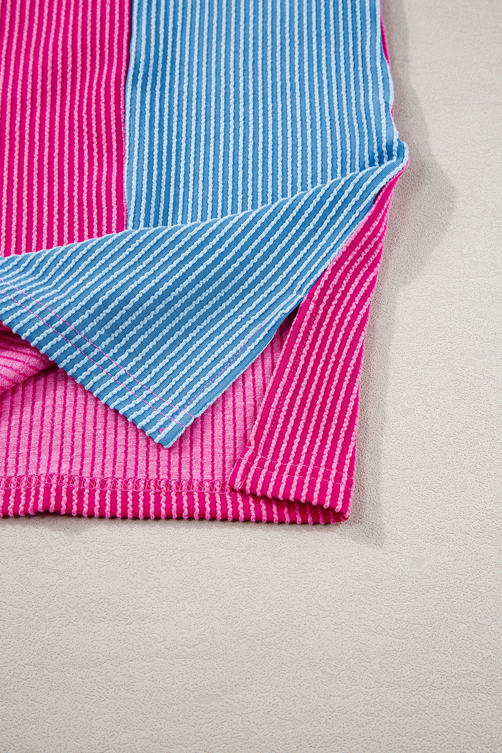 Rose Red Textured Colorblock Crew Neck T Shirt