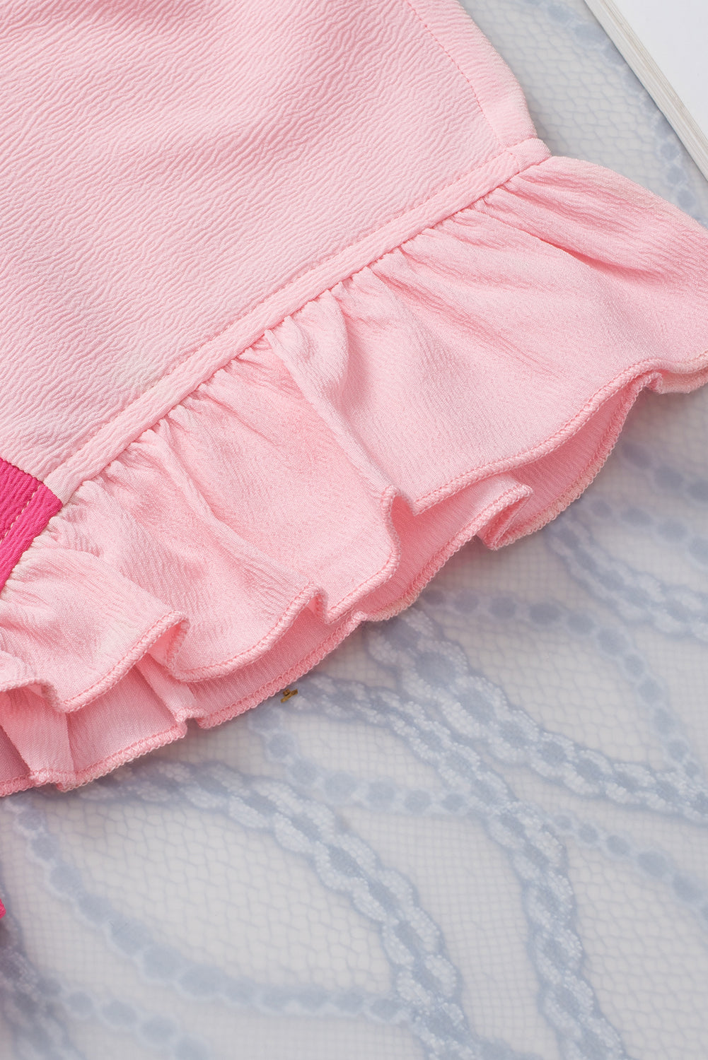 Rose Red Two Tone Ruffled Flutter Sleeve Blouse