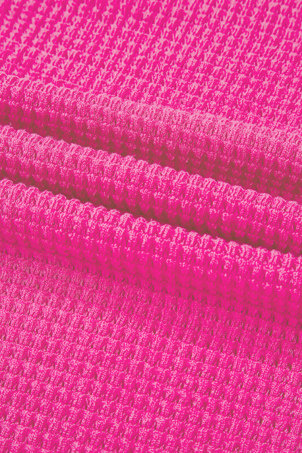 Rose Red Waffle Knit Side Slits Loose Fit V Neck Top