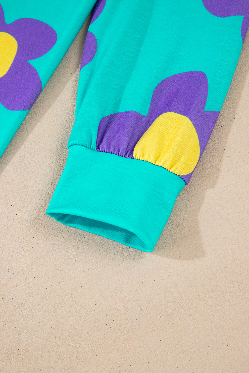 Sky Blue Floral Color Block Long Sleeve Loose Top