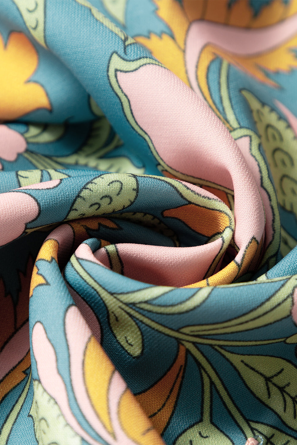 - Vibrant floral pattern exudes a cheerful and refreshing summer vibe.