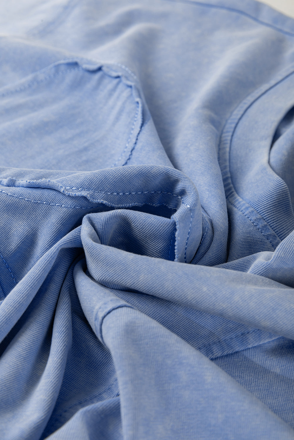 Sky Blue Mineral Wash Flower Patchwork Mini T Shirt Dress