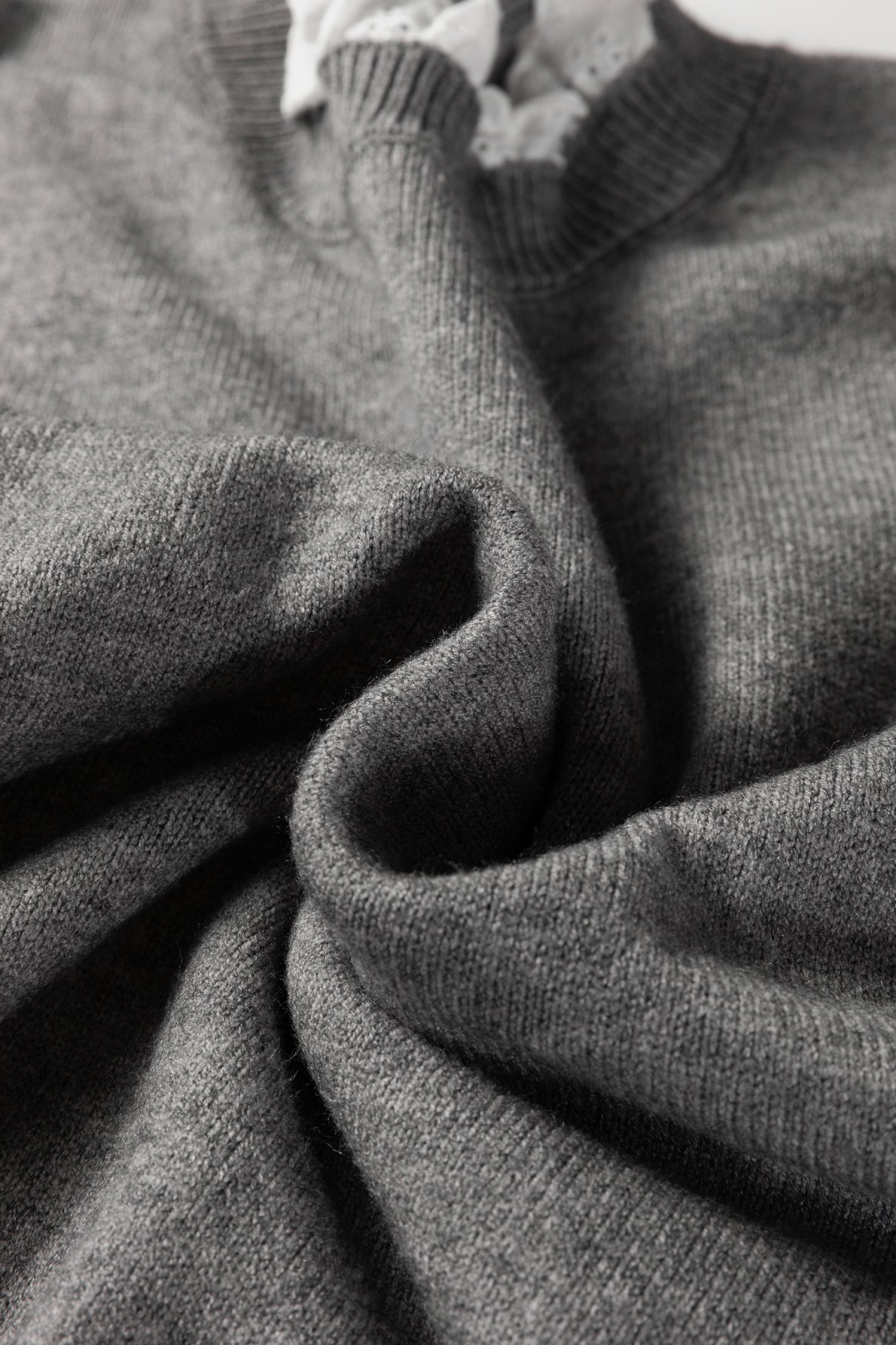 Sleet Lace Trim Patchwork Buttoned Cuffs Loose Sweater