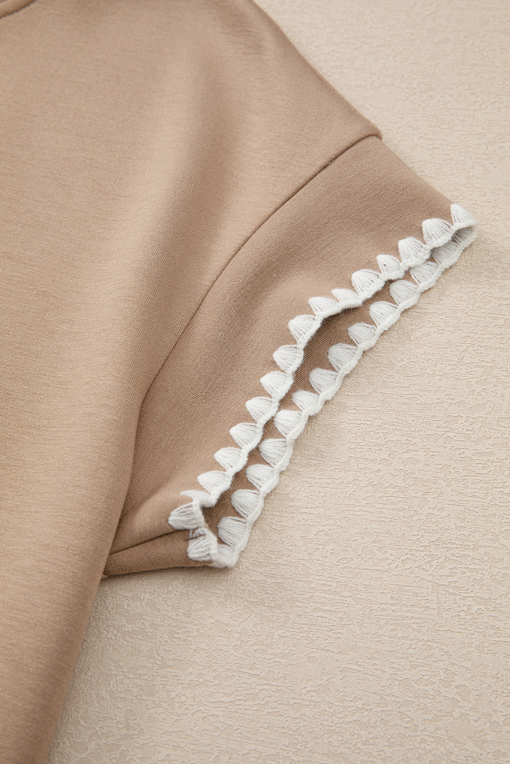 Straw Yellow Ric Rac Color Contrast Ribbed Edge Crewneck T Shirt