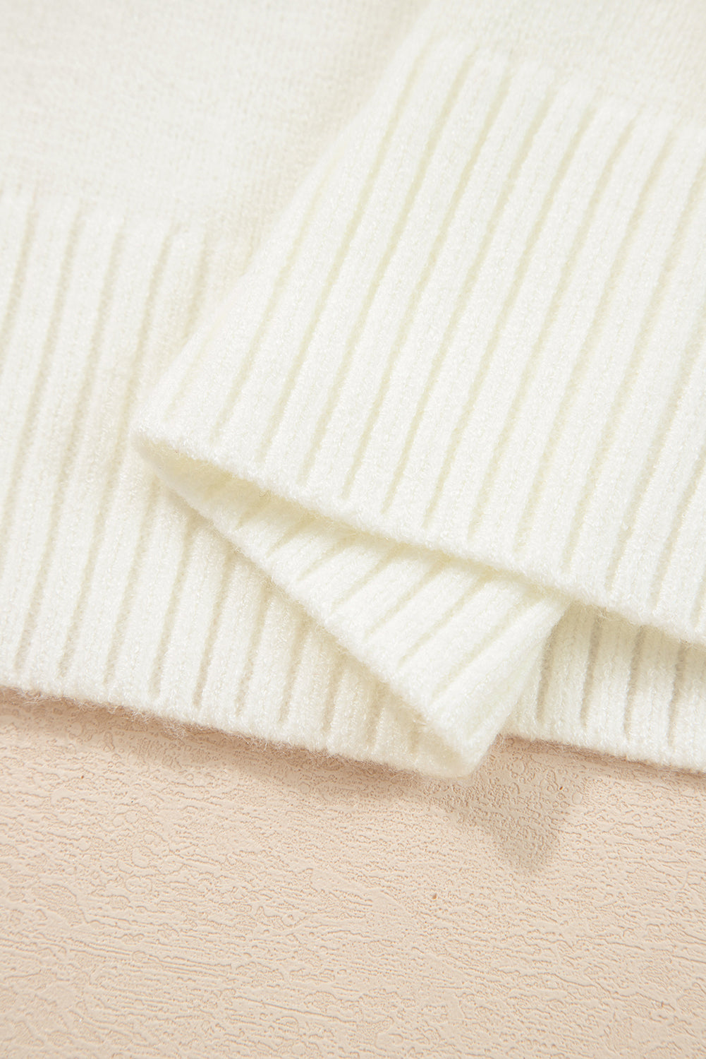 White Embroidered Flower Bouquet Ribbed Trim Loose Sweater