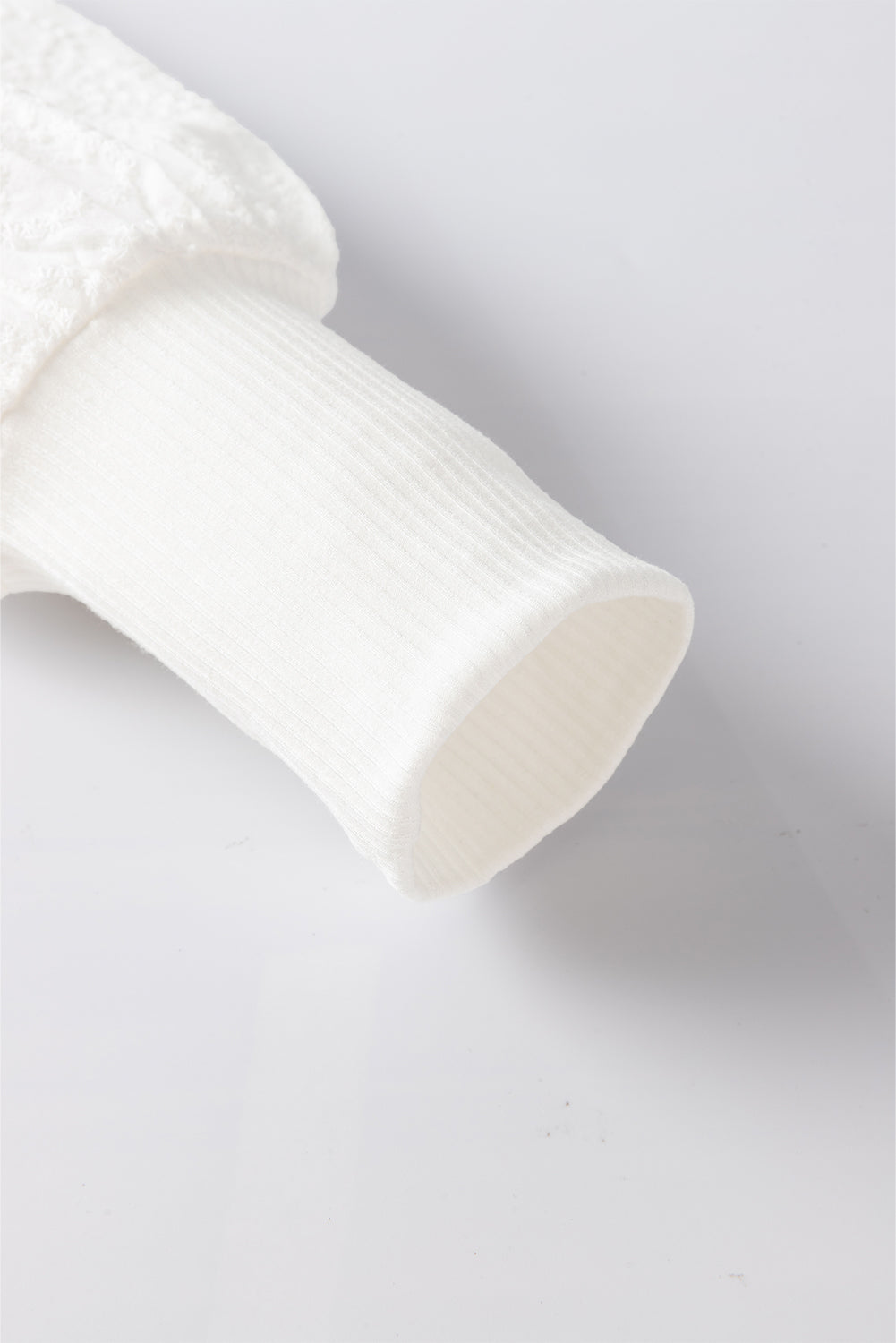 - We are fond of its U-neck, elastic ribbed texture, and cute puff sleeves