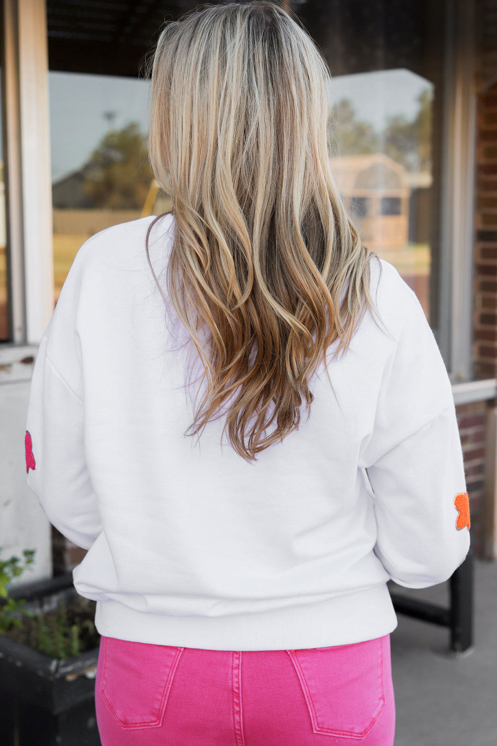 White Howdy Glitter Chenille Patch Graphic Casual Sweatshirt