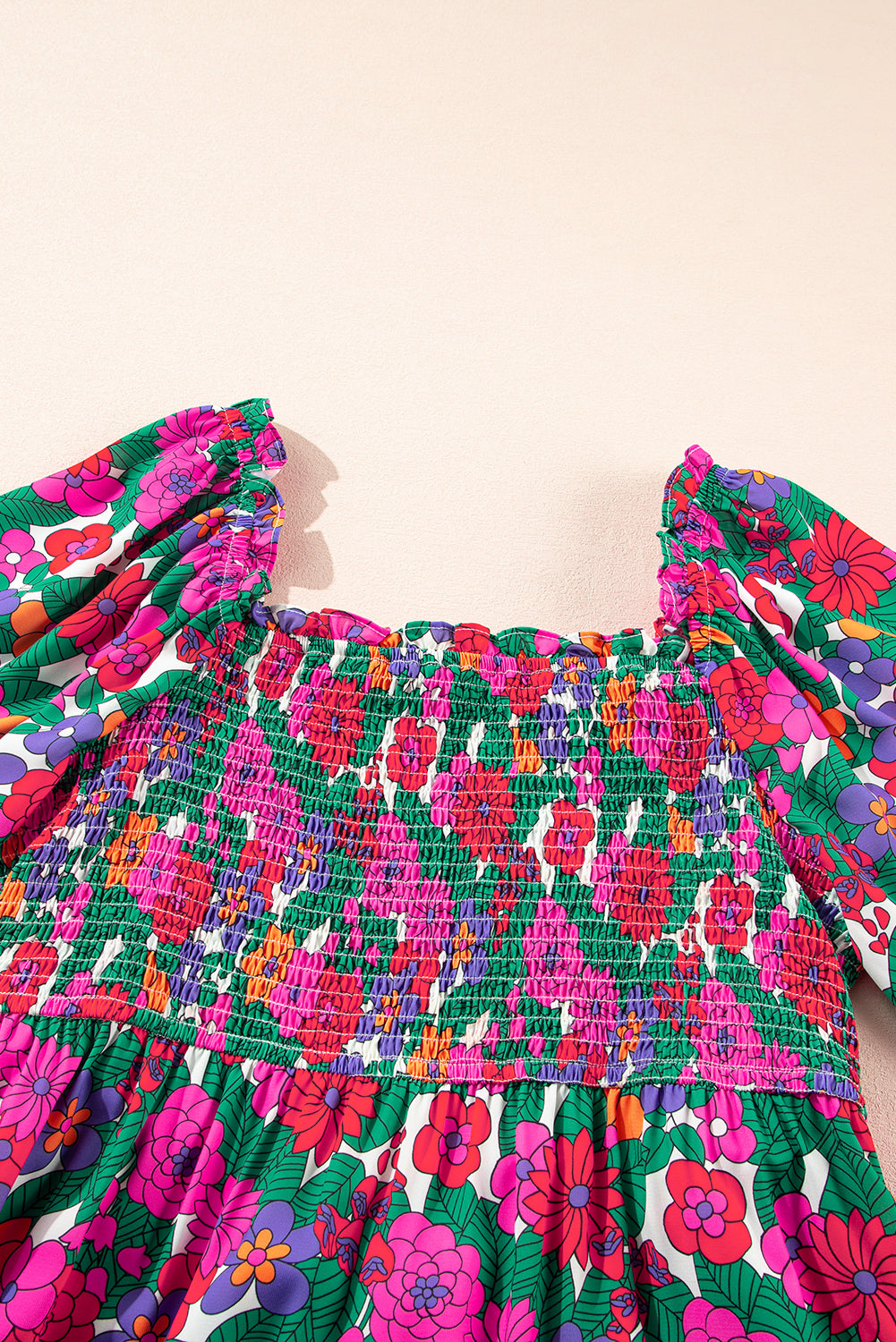 - Shirred detailing adds texture and interest to the overall look