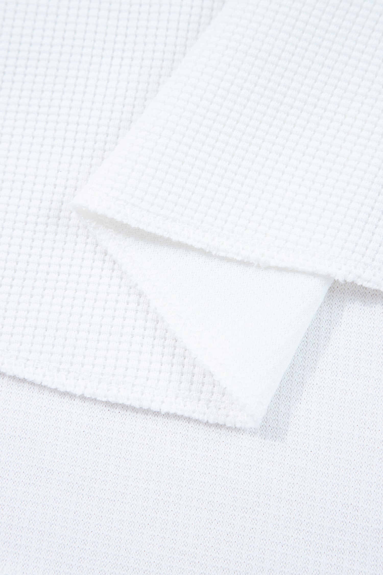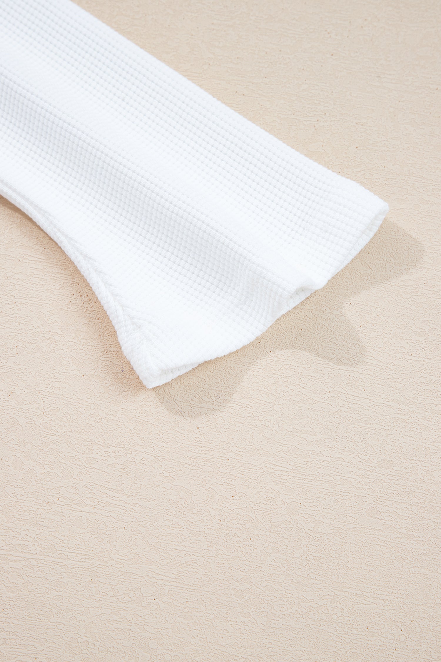 White Solid Color Waffle Ribbed Patchwork Dolman Sleeve Oversize Knit Top