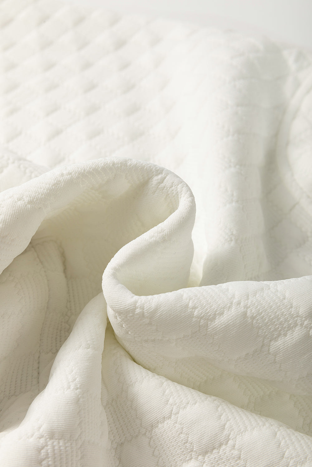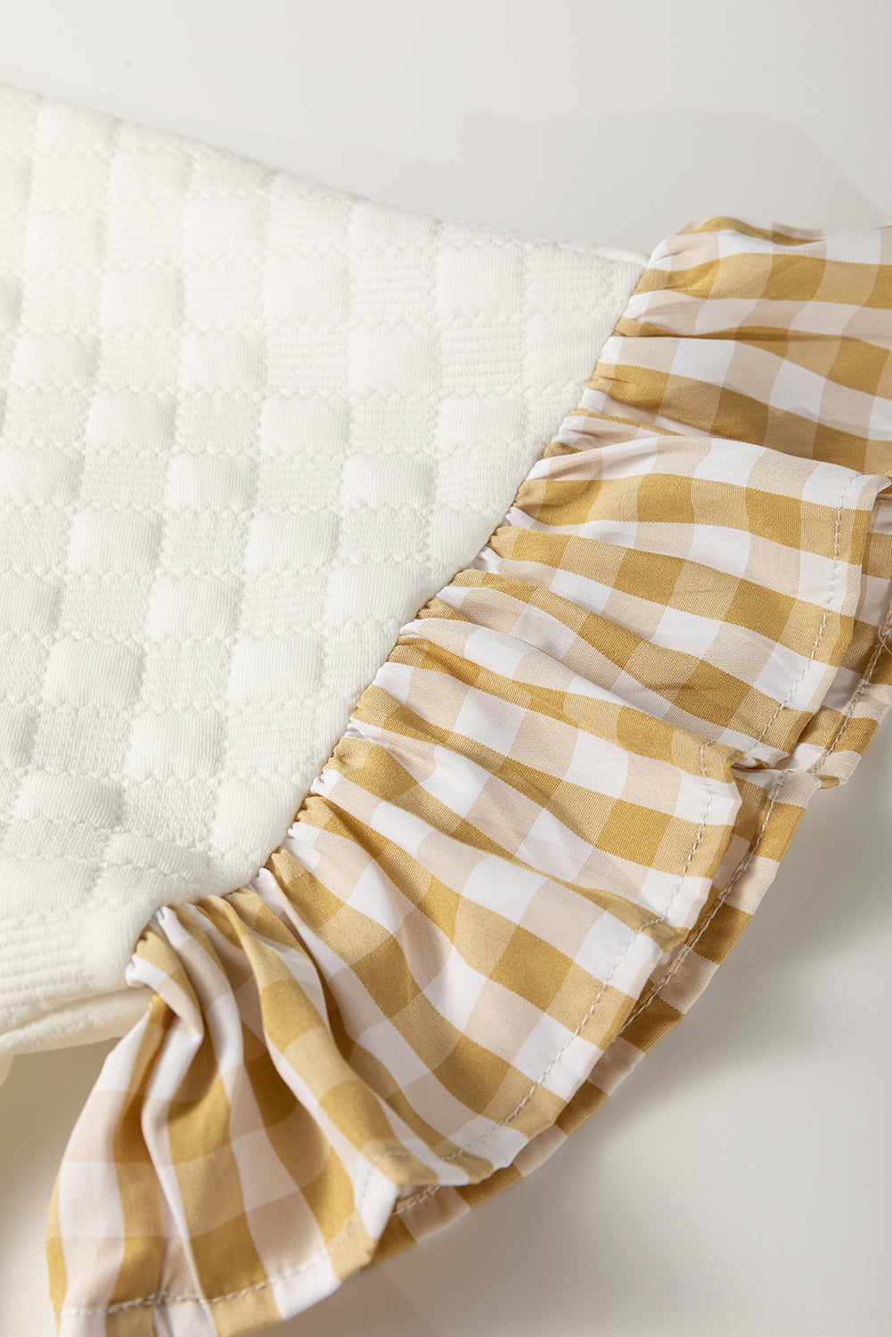 White Textured Checker Contrast Print Ruffled Sleeve Blouse