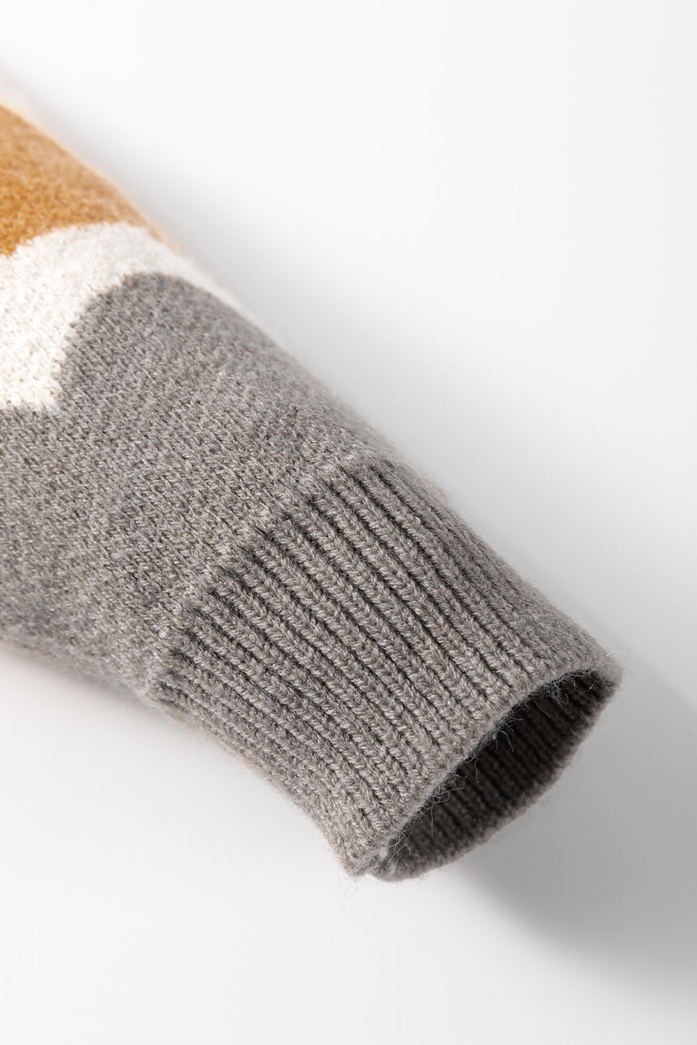 Yellow Wave Striped Balloon Sleeve Drop Shoulder Sweater